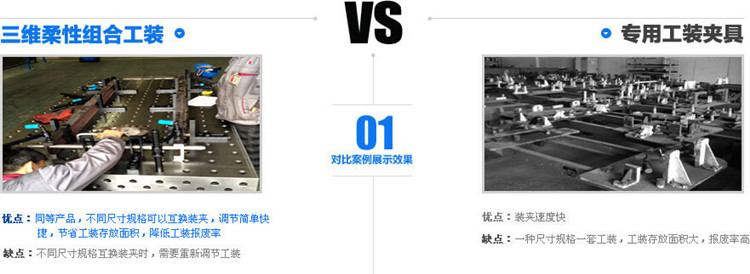 三維:代表三個(gè)方向一般夾具都是縱向和橫向沒有垂直方向。平臺(tái)大面有二個(gè)方向,四周邊可用作垂直方向的安裝,從而達(dá)到立體組合。