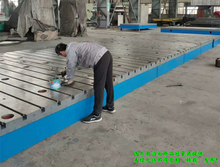 拼接裝配平臺適用于大于4000X8000規格的大型鑄鐵平板,因為單塊鑄鐵平板面積過大,不容易運輸或安裝的大型鑄鐵平板。采用小規格鑄鐵平板拼接的方式來完成。這種拼接的方式對拼接平臺使用絲毫沒有影響。